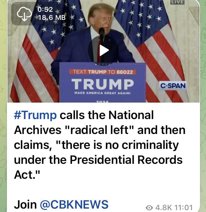 トランプはNational Archivesを "過激左派” と呼んだ、そして主張した、”大統領記録法” に違反する犯罪は無い” と。