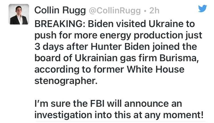 速報:バイデンがエネルギー製造を後押しをするためにウクライナに行った。ホワイトハウス前速記者によると、ちょうどハンター バイデンがウクライナガス会社 Burismaの役員会に出席した3日後だった。