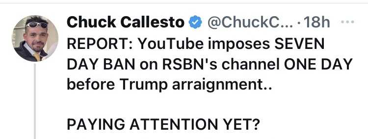 レポート:YouTubeがRSBNのチャンネルを7日間のバンにしたが、トランプの罪状認否の1日前のことだ...
