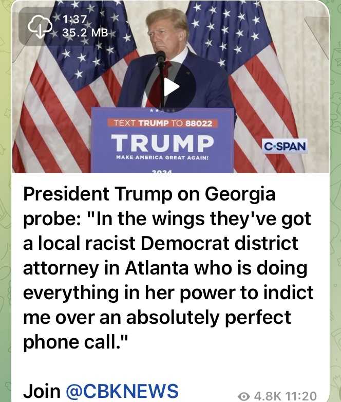 トランプ大統領、ジョージア調査について:”彼らが準備しているのは、アトランタの人種差別主義者の民主党地方検事だ、彼女は権力を利用して、私がかけたまったく非がない電話を元に起訴しようとしている。”