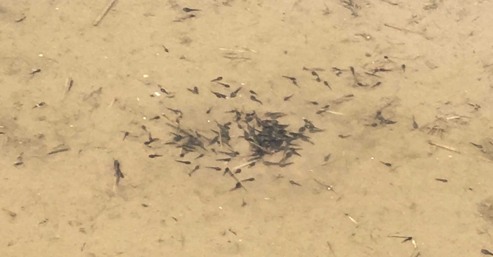 水を張った田んぼで見つけたオタマジャクシ、のどかな田舎の風景の一つです。