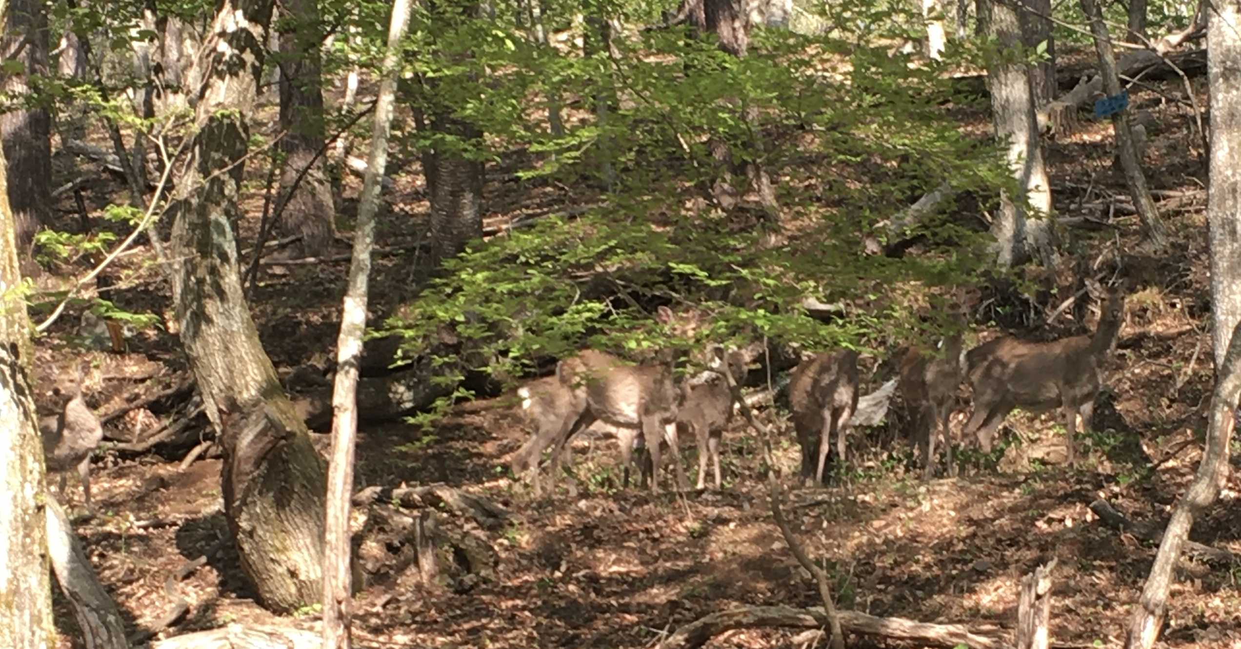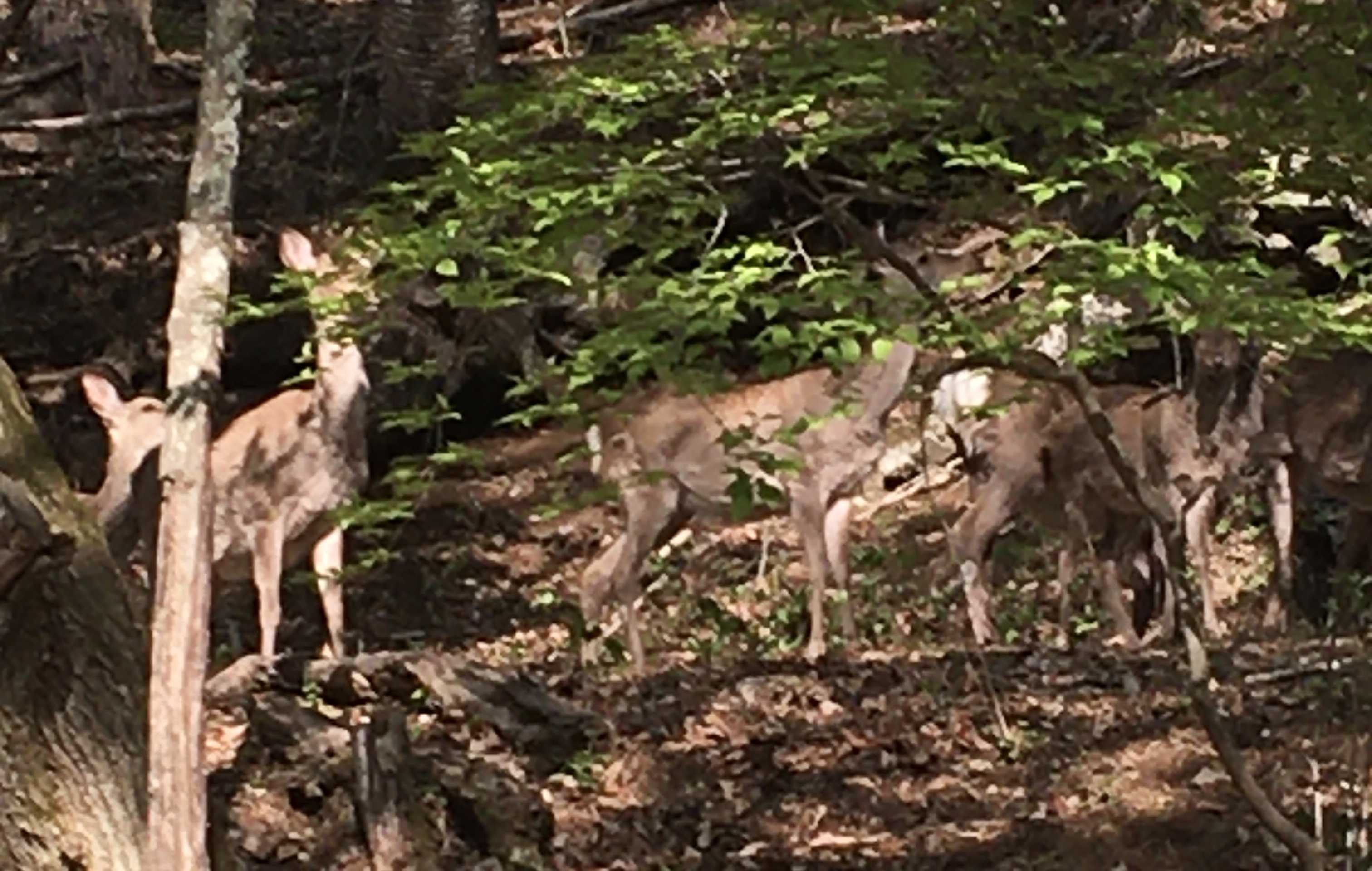 今朝の鹿一家です。鹿はいつも大きな家族で行動します。親に守られている小さな子鹿をみるといつも微笑ましく思います。今朝は9頭で行動していました。