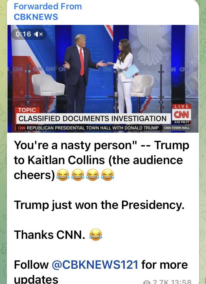 テレグラム CBKNEWSチャンネルから転送メッセージ