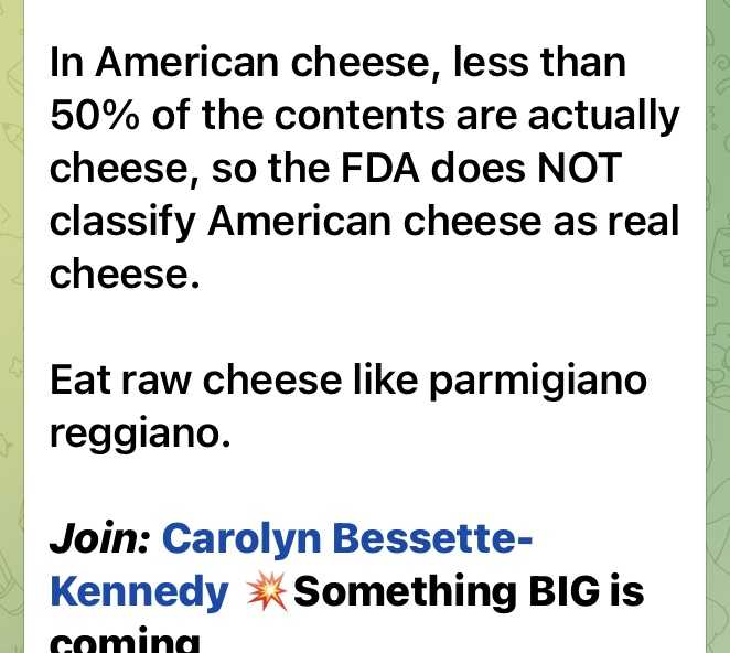 アメリカのチーズの中身の50%以下しかチーズが入っていない。なのでFDAも本当のチーズと分類していない。