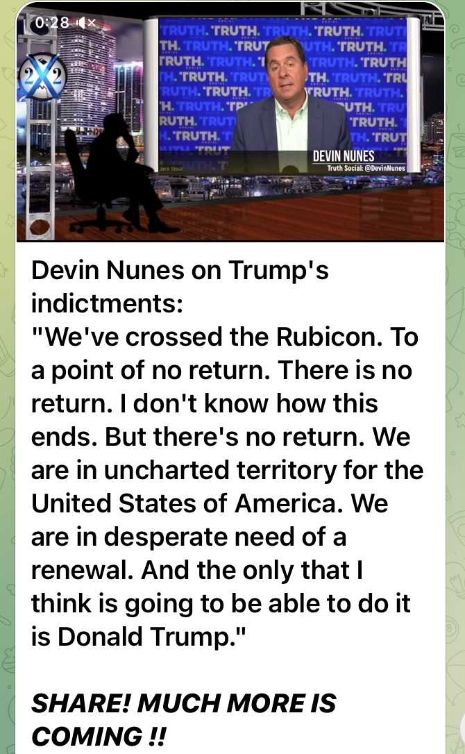 テレグラム Private Q Evidenceから、Devin Nunes(前共和党下院議員)さんの発言