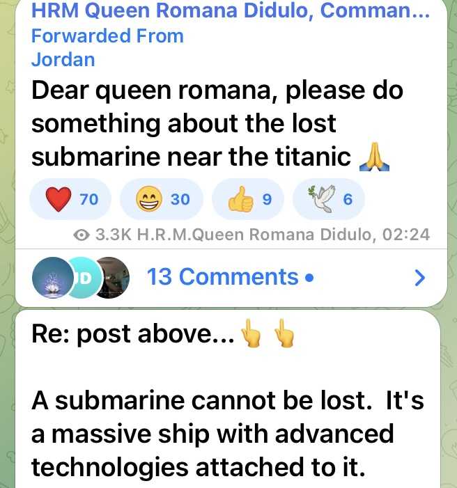 親愛なるロマーナ女王へ、タイタニック号の近くで行方不明になっている潜水艦を助けてあげてください。