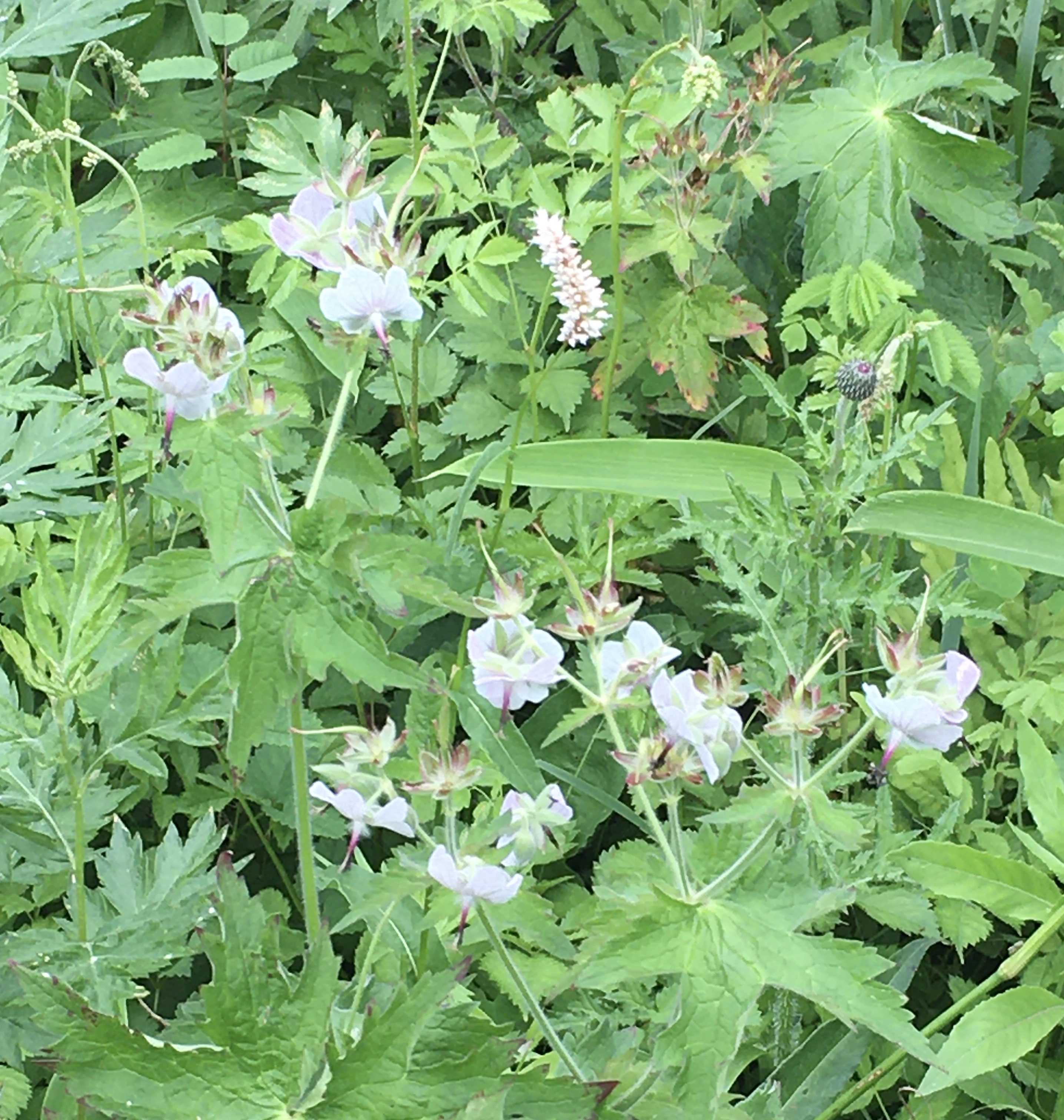 八島湿原とイブキトラノオ(右奥の山が車山)