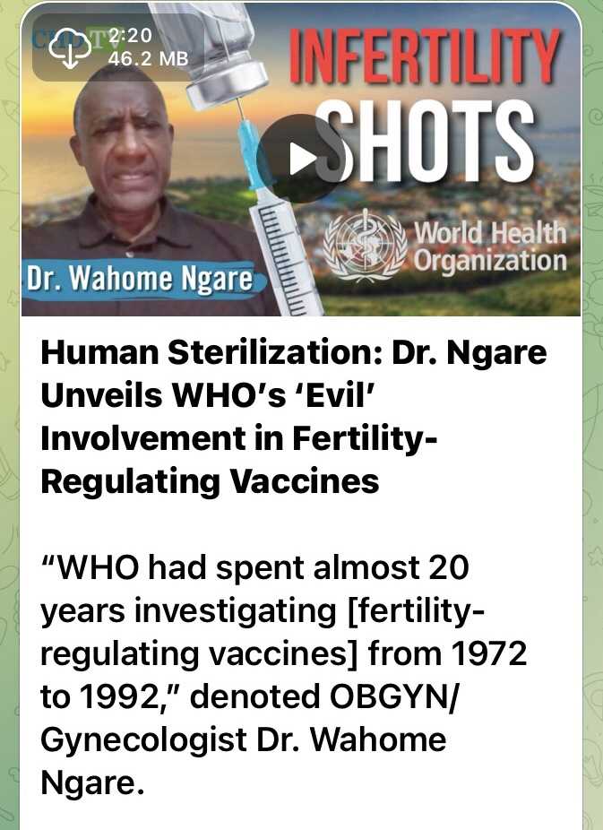 人類断種:Dr.Ngareが明らかにしたのは、WHOが、ワクチン接種で人々の生殖能力を規制するために悪魔的関与をしていたことだ。
