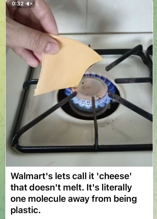 ウオールマートの、一応チーズと言う名の商品は溶けない。実際は分子構造が一つ違うだけでプラスチックになる。