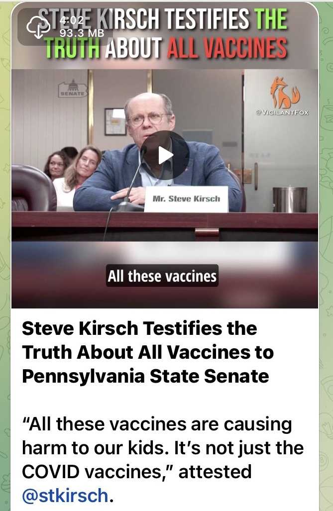 スティーブ・キルシュが、ペンシルバニア州上院で、全てのワクチンについて真実を証言した。