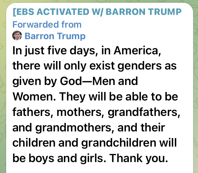 5日後にアメリカでは、神に与えられ存在する性は、男性と女性の二つになる。彼らは父親、母親、祖父、祖母、そして彼らの子供、孫は男の子か女の子。ありがとう。