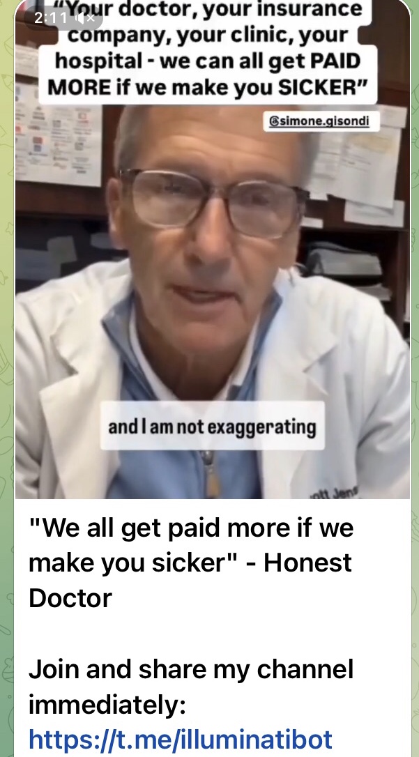 ”我々はあなた方を病気にすればするほど、金が儲かった。” - 正直な医者