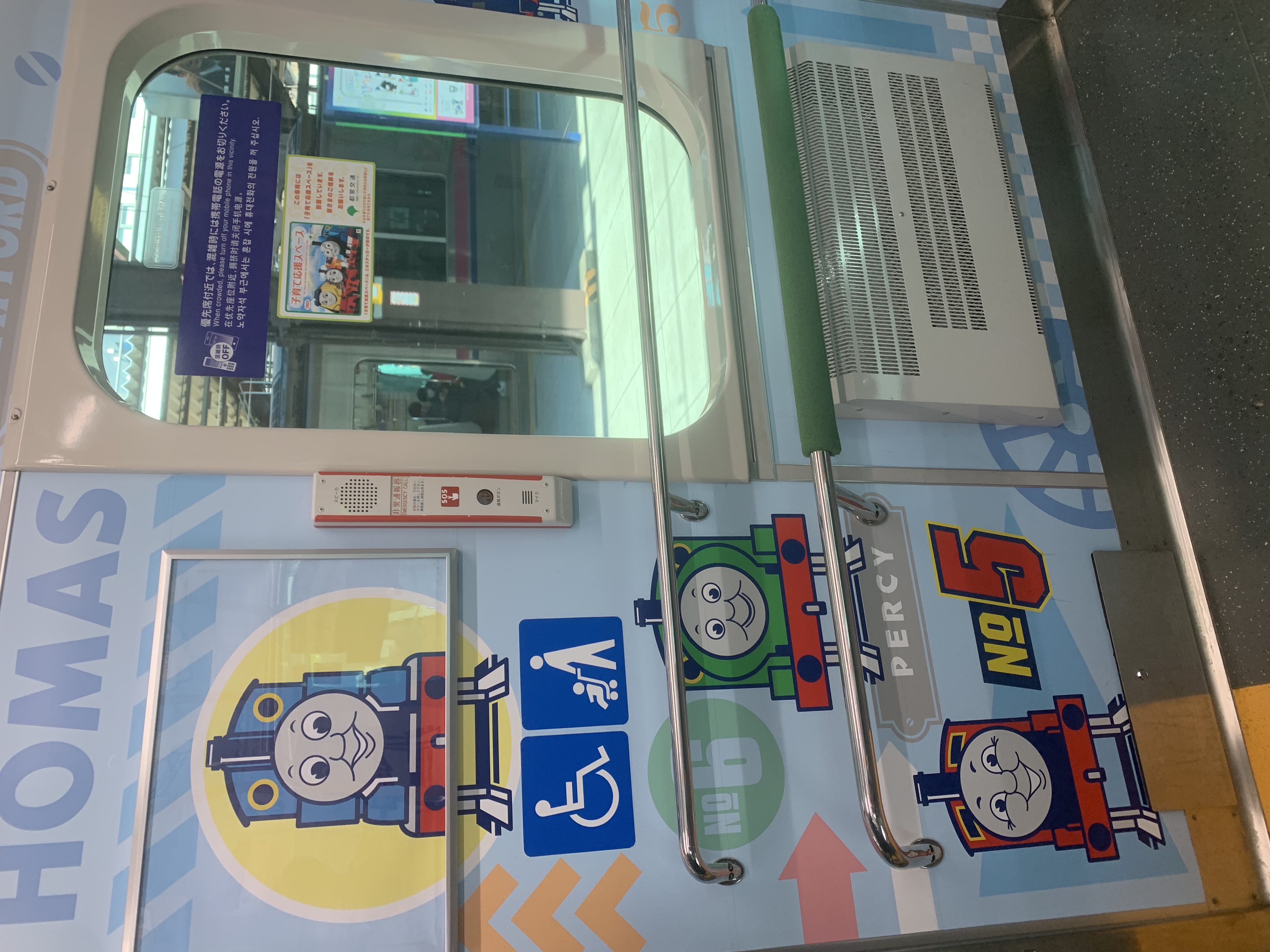 帰りの電車、「子育て応援」のトーマス車両だった。