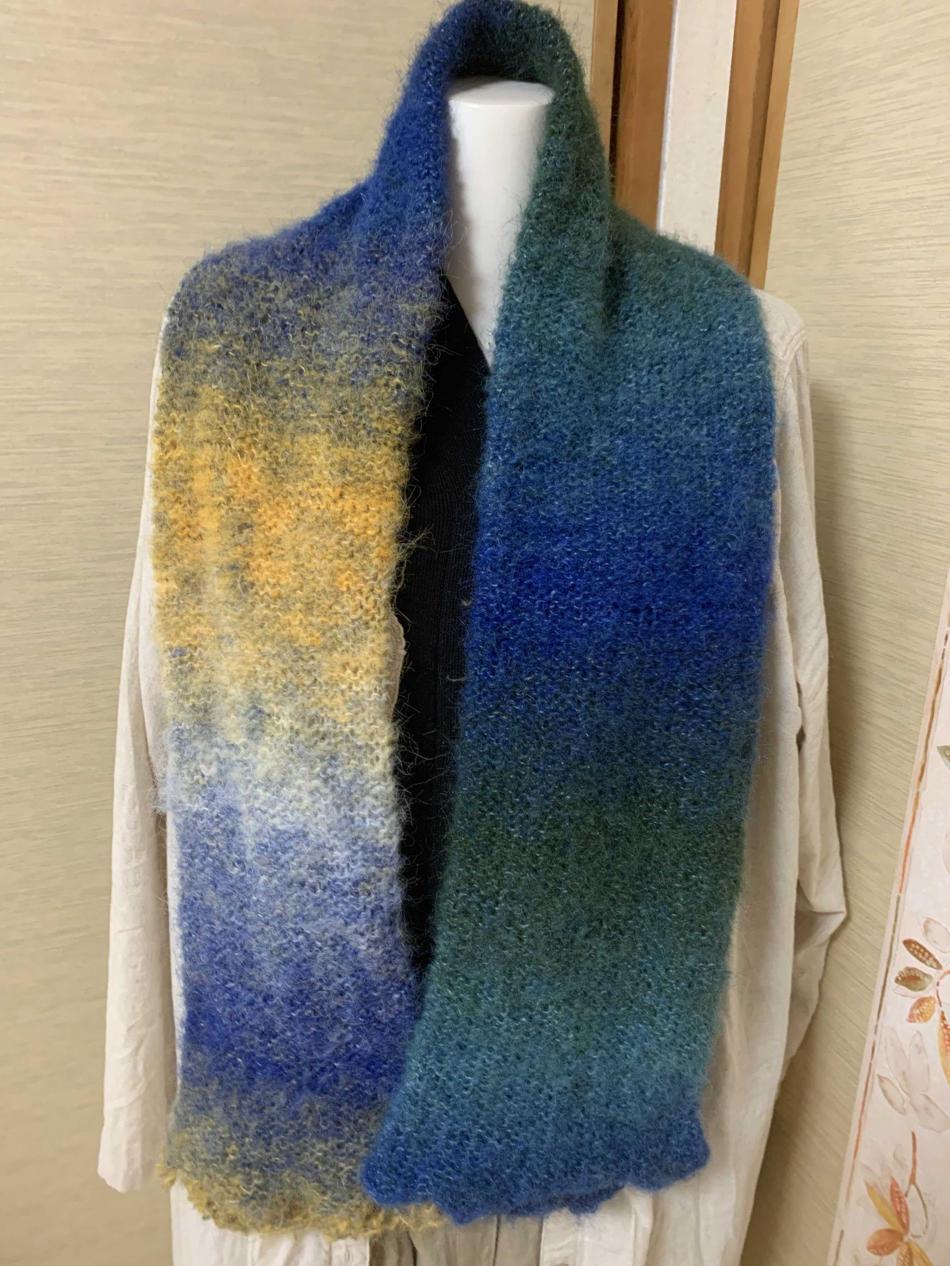 アルパカのね、グラデーションがとても素敵な毛糸を去年、思い切って色々買いました。一年寝かせて、ただいま製作中。このマフラー、すっごく良くない?ふわっふわだけど、ちょっとざくっとした感じもあって、しっかりした編み上がりです。青〜緑の玉と、青から黄色の玉を組み合わせて繋ぎました。うん、いい🙆来月、北国に出張する夫用にしようかな、ちょっとアートっぽ過ぎてイヤっていうかな、と思いながらこの写真を送ったら、「すごい良い」「ありがとう!」「暖かそうだね」と、メッセージがいっぱい届きました。気に入ってくれて良かったよ。レッグウォーマー、新作に取り組んでます❤️2024年のポストカード毛糸、「ポーランド」。地味だな〜と思ってましたが、シンガポール同様、編んでみるとシックでとてもいい❣️お出かけで使うのが楽しみなので、頑張って完成させようと思います❣️