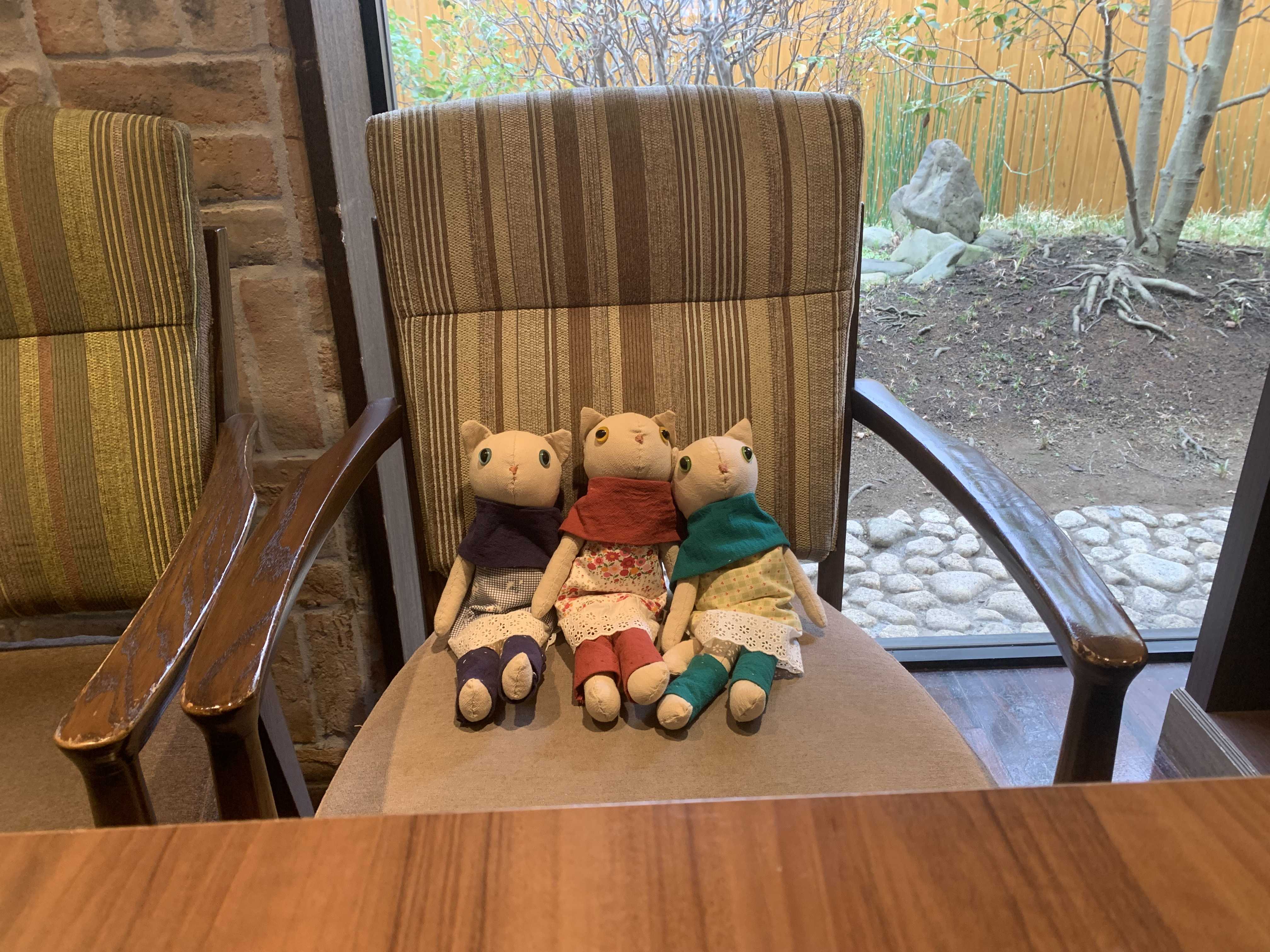 10時半開始予定だったのですが、ウチから会場まではすごく渋滞する一本道のトンネルがあるので、早めに出発。結果、10時前に到着してしまった。。。今日は混んでなかったのよ…まあいいか、案内された席周りだったら迷惑にはならないだろうと撮影しちゃいました。時間潰し。一瞬で取り出して並べたので、ちょっと姿勢が変? もちろん、この一枚の後、すぐにしまいましたよ♪「最近の作品披露」でみコンコン紹介。「あらー、お洋服とかバッグだけじゃなくて、お人形も手出ししちゃったの?」と言われながらも、皆「可愛いね❤️」と褒めてくれたので、嬉しい☺️重い曇り空でしたが、楽しい集まりでした。もう何回会えるのかなあ…メンバーみんな、年取ってきて病気の話が多くなってきてます。だからこそ、また絶対会おうね、と次回の約束をしました。次は春☘️その頃、私は何を作っているんだろうか…楽しみです♪お出かけして、疲れた〜のみコンコンたち❤️