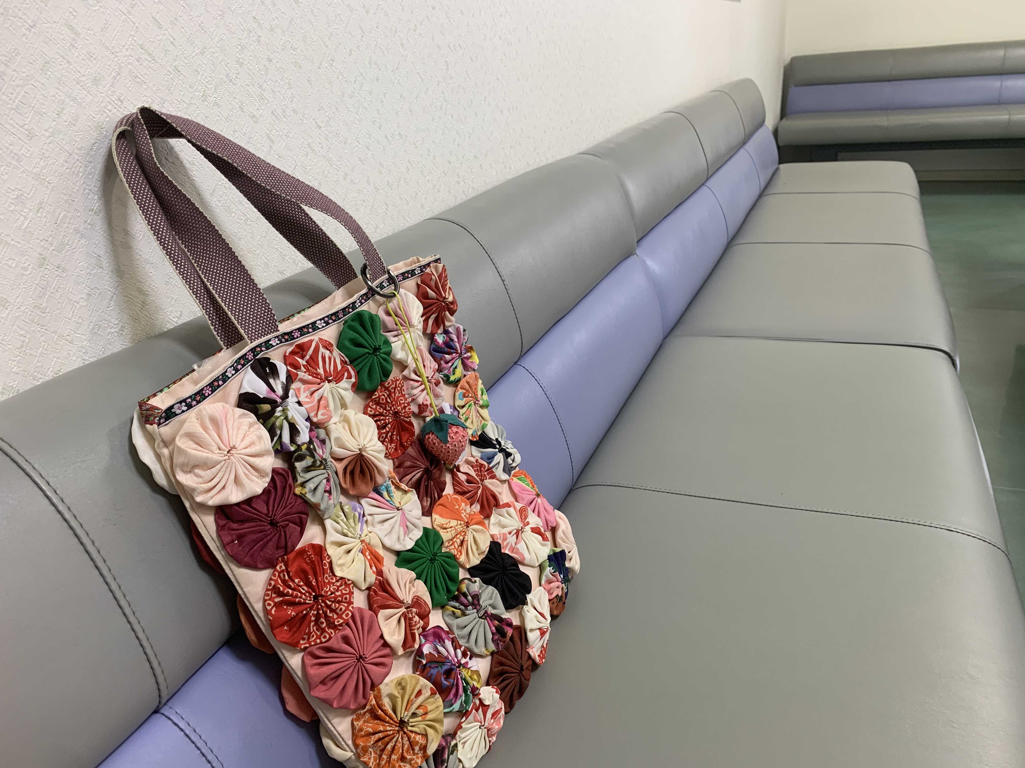 以前作って、あんまり使う機会のなかったヨーヨーの薄っぺらいバッグ。決めた。お医者さん用にする。