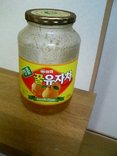 2年半くらい前でしょうか?ゆず茶という存在を知りました。今では普通にスーパーやホームセンターに置いてあるのでメジャーになったものです^^ゆず茶はゆずをはちみつ漬けにしたものですが、ジャムのような感じです。ティースプーン2杯くらいをお湯を入れたコーヒーカップに入れるだけで出来上がりです。手軽ですし、香りもよく、一口飲むと「ほぉ~っ(#^.^#)」としちゃいます。ゆず茶自体は甘いのに、ゆずを噛むとほろ苦く、これは日本のものでは例えられない不思議な味だと思います。ゆずは体も温まるので、風邪予防にも良いと聞きました。案の定ゆず茶を飲んでから去年、今年と風邪を引いていないので効果はあるんだと思います。花粉症にも効くと聞いたんですが、(おそらくゆずの香りで鼻が通るということだと思います)去年は効果が感じられませんでした^^;今年は花粉も少ないので、分りませんが、まだ辛いとは感じていません。ゆずの皮ってなかなか食べることはありませんが、ビタミンも豊富そうで栄養面でも肌に良さそうです^^なので、甘いものが飲みたい時はすぐコレを出してきます。夏にはグラス2杯分くらい作り置きして麦茶以外が飲みたい時に氷を入れて飲んでいます。ジュースより体に良いし^^我が家はこのメーカーを飲んでいます。スーパーで購入もしましたが、全然違います。このメーカーが一番おいしいです。日本のはゆるいというか…、ゆずの香りも薄いし、はちみつの中にゆずをいれたという感じでしょうか?こちらのメーカーはゆずがメインでまさにゴロゴロ入っています。気になる方はレビューをどうぞ^^初めて知った時は本当に値段が高くって…。送料も考えると結構高かったんです。少しでも安いところを探すと限定20個くらいとかで一瞬で完売しちゃう上、再販がなかなか無い状態でした。ゆず茶は韓国では伝統茶なのでメジャーなんですよね。韓国に行ったら買いたいな~と思っていたら、なんと思いがけず韓国に行く予定が入ったんです。どこで、買っていいのか分らなかったので、とりあえずデパートに行ったらちゃんと置いてありました^^デパートで扱っているなら安心かな?と6本購入。デパートで1Kg800円でした。500gで580円くらい。「ゆずを食べる」状態に近いので、すぐに無くなっちゃって…。現在はネットで購入して飲んで(食べて?)います。たまにパンに乗せて、スライスチーズを乗せてチンして食べてます。これもおいしいですよ♪今は激安で現地のデパートより安くネットで買えます。メーカーは同じなので中身は同じですよ~韓国伝統ゆず茶:【三和】蜂蜜柚子茶1.03kg1本650円です。後にイオンショッピングセンター内に扱っているお店があったんですが、1KG1本で3000円くらいだったかな~?当時ネットだと1100円+送料だった気がします。店頭で売っているのがあまりに高くて絶句しちゃいました…全然関係ないんですが、韓国旅行の際、ドラマに主人が出演しました…。観光地ではなかったので現地の人と間違えられた上、指示を受け^^;とりあえずの言われた通りしてきたみたいです。最後に主演の方と握手をしたそうですがかっこ良くて若いさわやかな人だったけど誰か分らなかったとの事。しかもドラマのタイトルも分らないとの事。ダメじゃん!って後からかなり突っ込みましたよ…。あちらの方は少し出演した方にもちゃんと挨拶していたそうで凄いなぁ~と言っていました。