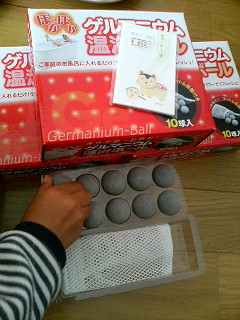 リクエストが多かったので、少しですが、再販売するそうです。メールで連絡がはいりました。画面を見たら、もう売り切れ状態なのか、それともまだ販売を開始していないのか分りませんでした…。メールは30分前に届きました。ナチュラル雑貨 なごみさん 再販売福袋 入り口細かいことはこちらの日記で見てください。昨日の福袋販売時紹介ページ今日は昨日以上に早いと思います。って、もう売り切れだったらすみません…。でも、予告なしなので30分で売り切れはないと思うんですが…。* * *↑どうやら、昨日の今日でチェックされている方が多かったみたいで売切れみたいです…。慌てて書きましたが間に合いませんでしたごめんなさいm(__)mいきなり話が変わりますが、今日、ゲルマニウムボールを使用しました。こちらのお店で購入したゲルマニウムボールゲルマニウム温泉ボール0325アップ祭5 0330アップ祭5想像以上に小さいです。付属のネットに入れてしまえば片手に乗るくらいの大きさです。サイズ比較でぽち袋を置いてみましたが分るかな?早く、効果が知りたくて今日は昼食後にお風呂に入りました^^30分つけて置かないといけないんですが、そんなに待っていられないのでゲルマニウムボールを置いて湯張りしました。湯張り中から息子と入っていましたが効果はというと…よく分からなかった汗もかきませんでした…湯冷めが違うかな?と思って昼ですが意識していました。気持ち冷めるのが遅くなったかな…?くらいです。でも、お風呂に入っていたのが40分くらいで、説明書きには30分は水に浸けて置いてくださいとあることを考えると実質10分くらいはゲルマニウム効果のあるお風呂に入ったということでしょうか?息子と二人だとドタバタなので、日曜に先に主人と息子をお風呂に入ってもらってその時からゲルマニウムを仕込んでおきます。日曜ならちゃんと効果が出るかな~?でも、これって毎日のお風呂はゲルマニウム効果のない湯船って事だわ