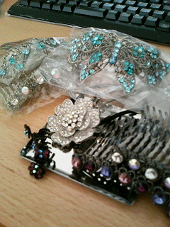 あっさりとポチってしまったこちら…OPEN記念限定福袋20個だけど、まだ残っていますね~。連絡がまだありませんが、明日くらいに届くのかな~?オープンだからお客さんを呼ぶ為に処分品のようなものは入れないと思っているんですが…。後で、後悔したらきっとクゥさん買えばよかった~って言っていると思います…。届いたらネタバレしますね~^^* * *私の愛用中のアクセサリー普段使いにしているので、手の届く範囲に置いてあるんですが、思いっきりキーボードが写っています…^^;うちはリビングにパソコンがあるので、実は画面の横に収納ボックスが置いてあるのです^^上の写真のシルバーの小物入れに入っている4つと↓これがヘビーローテーションされています他にもストックを撮ってみました分りにくいですよね…。この写真だけで、30個くらい写っているかも…。一つの袋に4つくらい入っているのもあります。他にも可愛らしいものもあったんですが、紛失してしまっているものも多くて…意外とお気に入りを失くしているのでちょっとショックを受けていました…一番上の写真で右下はリトルムーンさん、下のリボン型のクリップやストックたち、一番上の写真左に写っている商品のほとんどはnailyasanの商品です。私の感想ですが、商品の質はnailyasanの方が良いような気がします。スワロフスキーを接着剤でとめているんですが、たま~に石が斜めについていることがリトルムーンさんはあるんです。細かい作業なので仕方がないかな?写真の商品はまっすぐ付いてます。nailyasanでは気がつきませんでした。どちらも限定のデザインを持っているので、気に入った商品を購入するのが良いと思います。もう終了していますが、nailyasanは1万円の福袋でも後悔しなかったですよ!現在は5点入りで2980円などがあります。5周年記念です。大人め可愛い♪を詰め込んだビューティフルヘアアクセ4点プラス1点福袋リトルムーンさんは今晩(深夜)に引越し福袋が販売されます。今朝のメルマガでありました。メルマガよりコピーしました↓【ヘアゴム】の中から… ×1 【ヘアピン】【マグネットピン】【ピンチクリップ】の中から… ×2 【U字ピン】【S】【M】【L】の中から… ×4 【かんざし】の中から… ×2 【バンスクリップ】の中から… ×1 【ダッカールクリップ】【S】【L】の中から… ×1 【バレッタ】【S】【M】の中から… ×1 【コーム】【S】の中から… ×1 【プチプチバンス】の中から… ×2 プラス、夜会巻きコーム Lサイズ… X1(大きさ・カラーなど、全体的なバランスを見てお送りします。)以上値段はまだ分りません。というよりまだ公表していません。こちらで紹介したかったんですが、発売1時間前じゃないとページが開けられないように設定してあるそうで…。分ったらすぐブログに紹介しようと思います。結構自信がある感じだったので、ちょっと楽しみ~前回の引越しは総合1位だったので、これも総合1位になると思います(#^.^#)追記→私の勘違い?だったみたいで今見たらページがアップされていましたあなたのヘアクリエイト魂を刺激しちゃう16点!【お引越し】ヘアアクセ福袋思っていたより金額が高かった…といっても単価625円になるし、その上送料込みだから絶対お得なんですけど…何故か全体の金額を見るとびっくりしてしまいました…。同じコームリトルムーンさんで安く買ったのに…と言っても確かMサイズで今回の福袋より一回り小さいサイズで1300円だったかな~?Lサイズが今回入っているので、もう少し金額が上がると思いますが…。難しそうに見えるんですが、使うと簡単なんです。不器用と自他共に認める私ですら2分もあれば出来るので…。ポイントは2つあって、髪にクセをつけるのと少し湿らせることです。ストレート状態で湿らせるだけでも随分簡単に出来ますよ!現在は緩やかパーマをかけたので湿らせるだけで私は終わります。結婚式の2次会に着けて行ったんですが、すっごく好評で^^その場で着けたり外したりして、使い方を説明してました…。きっちりつけるより、ちょっと失敗した時のルーズさの方がおしゃれに見えます…。そういえば、近くのショッピングセンター内のアクセサリーショップにリトルムーンさんの画像をコピーしたものと、リトルムーンさんで販売しているアクセサリーがびっくりする価格で出ていました…。ネットで仕入れたのね…と思って写真も見てましたが、そのまま画像を使うのって凄いですよね。いいのかな?