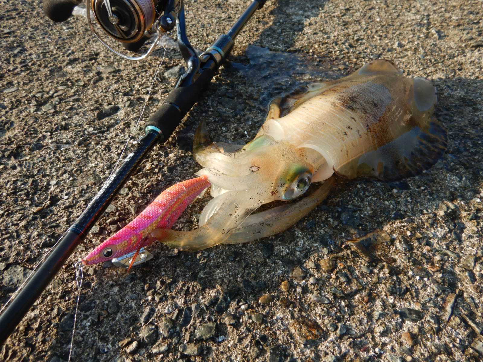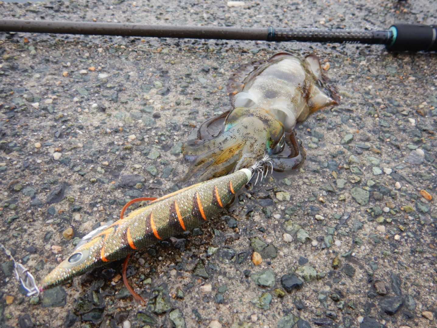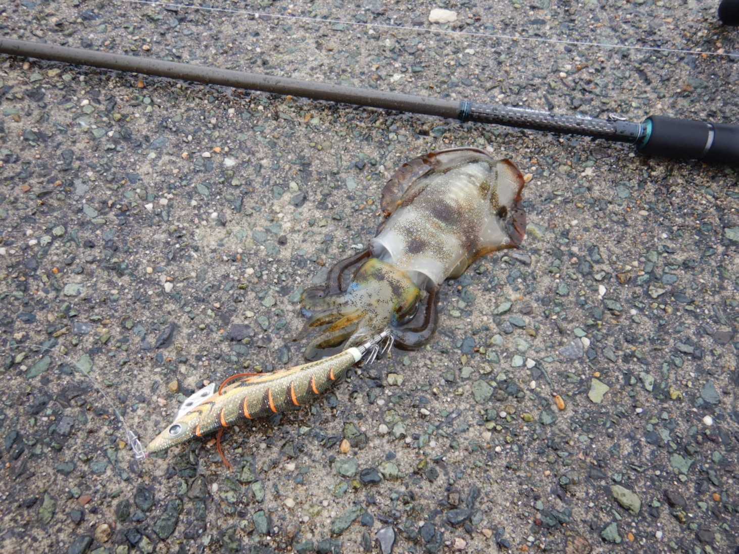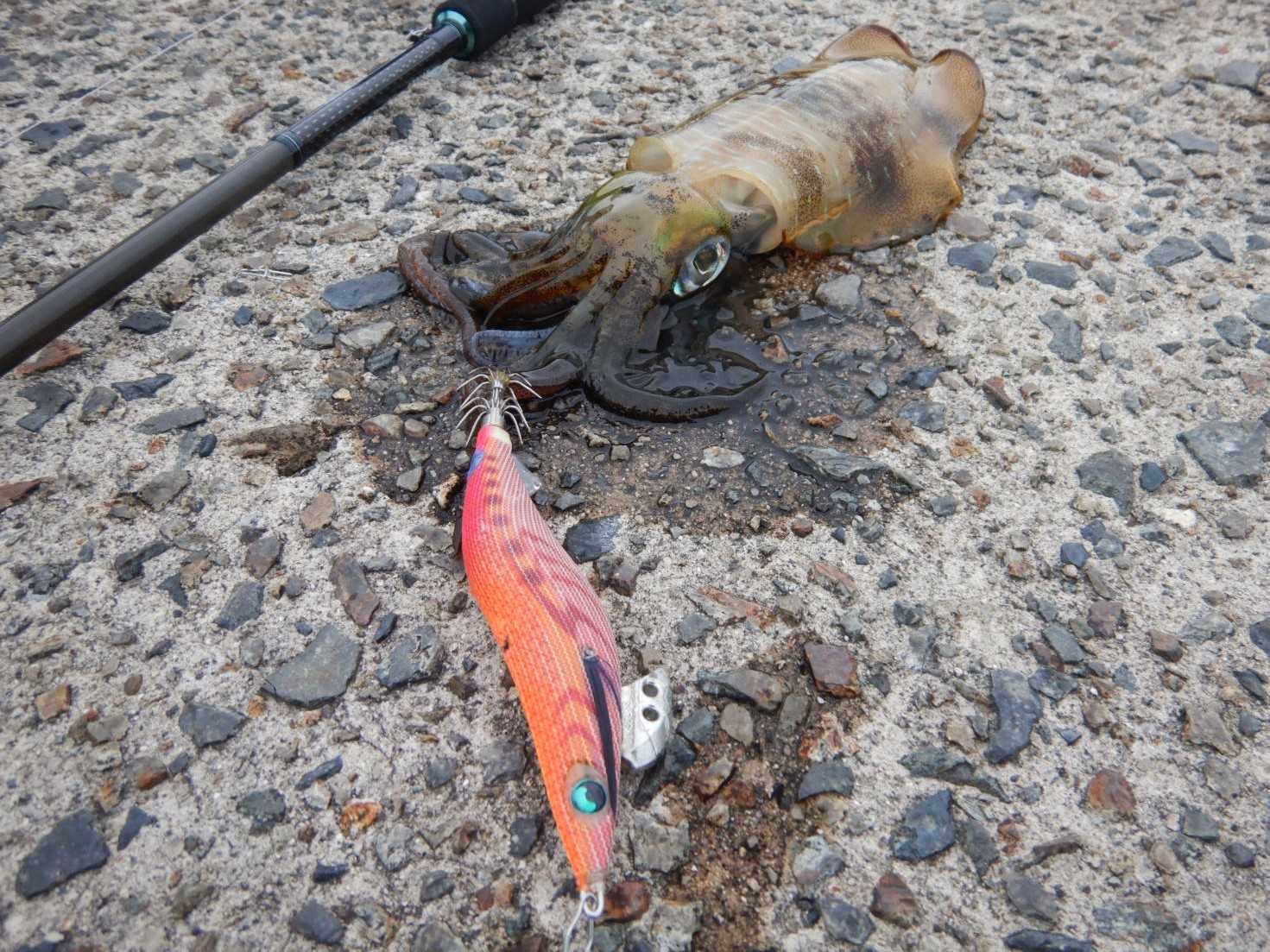 そろそろ終わり?にするかと思いつつ先日は、山陰(島根県)へエギングに行ってきました久しぶりに風が弱くて釣りやすい上に潮目もいい感じに入ってきているのにラインに変化が全く出てくれません空いている場所を転々とまわりながらシャクリ続けても、時間ばかり過ぎてダメだこりゃーって感じでしたが…開始から約1時間半が経過した頃に凄く可愛い「アオリイカ」がヒット同ポイントで10分後に、ズシっときてサイズアップの「アオリイカ」ヒットその後は、小さな1杯を追加したのみで反応が感じられないのと、ボラの大群が行ったり来たりし、ラインに触れるのでポイント移動することにしました移動先では、見えイカが沢山いたものの今一つやる気が無い状況にイライラ…諦めて帰ろうかと思いましたが、突然?スイッチが入ったみたいで「アオリイカ」2杯を追加したところで小雨が降り始めたし、吐いた墨の影響かイカが逃げたので、終了としました******************************【当日の釣果(7時15分から13時15分まで)】アオリイカ × 5杯【当日の潮】中潮 干潮…09:10、満潮…13:50波 1.5メートル後1.0メートル【タックル】ロッド:ダイワ エメラルダス STOIST AGS 90ULL-Sリール:ダイワ 19セルテート LT2500S-XHライン:PE0.8号(アバニ エギング マックスパワー PE X9)リーダー:フロロ1.75号(シーガー グランドマックス FX)エギ:3.0号 (エギ王K、エギ王SEARCH)ほか******************************