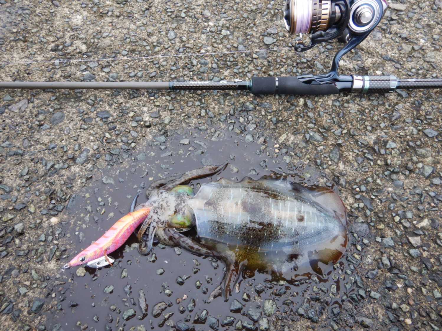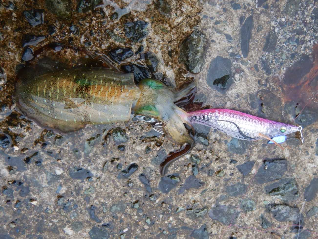 先日は、3回目の秋エギングに山陰へ出かけましたが、到着が遅れたので既に風が強い状態でした少しでも釣りやすい場所を狙いますがそれらしい反応は全くありません激しいダートには、ダツが反応して寄ってくるので、ボトムをしっかり取って、厄介な相手を避けて探ると開始から1時間40分後にようやく「アオリイカ」が掛かってくれました決して大きくは無いですが、この時期はこんなサイズですかねこの後も、釣りにくい強風に加えてアオリイカの反応も少ない状況の中4杯追加で掛けましたが、どの子も小さいので、優しくリリース日差しが弱い日だったのでじっくり粘ろうと思っていましたが、小雨が降ってきたので終了としました******************************【当日の釣果(7時15分から12時45分まで)】アオリイカ × 5杯【当日の潮】小潮 満潮…02:50、干潮…11:34波 2メートル後2.5メートル【タックル】ロッド:ダイワ エメラルダス STOIST AGS 90ULL-Sリール:ダイワ 19セルテート LT2500S-XHライン:PE0.8号(アバニ エギング マックスパワー PE X9)リーダー:フロロ1.75号(シーガー グランドマックス FX)エギ:3.0号 (エギ王K、エギ王SEARCH)ほか******************************