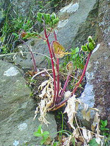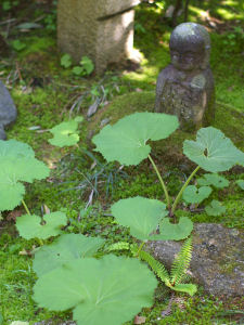 ふと気がつくと初夏の庭。。。お地蔵さまも蕗に囲まれています。