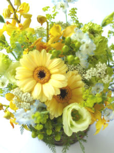 初夏のアレンジメント…とある日の別ヴァージョンです。お祝い用フラワーアレンジメントは3675円からです。サプライズ的な演出も承りますご依頼主様のご希望をどうぞお伝え下さいませ~ご予約お待ち申し上げております。。。