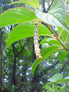 豹柄、イケイケいも虫子ちゃん発見落ちそうで落ちない。。。元気よく踊っていました~(笑)。