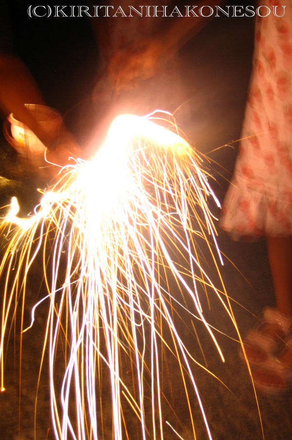 当荘庭にて、こんな感じでお客さまが手花火を楽しんでいますこれぞ夏休み…ですね花火セットは、かなり大きなパックですが500円と良心価格にさせていただいていることもあり、お陰さまで飛ぶように売れています。水バケツ、チャッカマンはお貸し致しますのでフロントに申しつけ下さいませ箱根の夜はとっても涼しいですよ~~~。花火をしながら夕涼みをどうぞ楽しんで下さいね!(過去のブログはこちらからどうぞ http://kiritani-hakoneso.seesaa.net)掛け流し大涌谷源泉の濁り湯が自慢の美人の湯宿『桐谷箱根荘』のオリジナルHPはこちら http://kiritani-hakoneso.com/index.html
