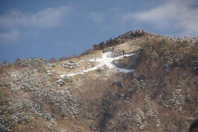 箱根強羅温泉のシンボル 大文字山一昨日の雪のおかげでくっきりと【大】の文字が浮き出ました。この大の字を見ながらの雪見露天・・・・・強羅しか味わえない冬のトンガリです
