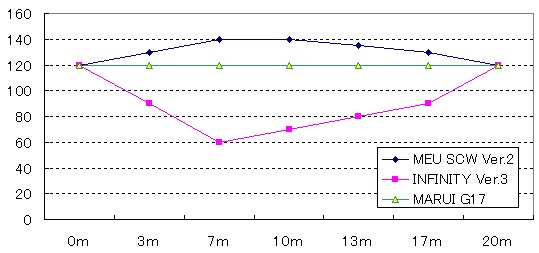 1.マルイG17は25mの距離でも、水平弾道を保ち、20cm程度の円内に入る!