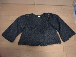 Pirrotの2007円袋です。2日に届いていたのですが、何となく後回しにされていたのでした。だいぶ乗り遅れた感はありますが、ネタバレー。 ごっついニットコート。かなり黒に近い紺でしょうか。ニットコートは…あるのだよね…。需要はなさそうだけれど…交換希望です。ベロアワンピース。皆さんのネタバレでよく見かけるヤツですねー。可愛いけど、ちょっと長い。三段スカート。前回のもののネタバレを見て、これはこないで!!と思っていたものです。が。着てみたら、意外に良い!ごく普通に可愛い!オレンジの7分袖ニット。え、オレンジ!?とも思ったのですが、7分袖って、楽。(長袖に耐えられず常に袖をまくる癖があるので…。)部屋着にしようかな。黒タートルネック。ごく普通です。重ね着に、よく使うー。ベロアボレロ。形は可愛いのです!でもボタンは付け替えよう…。透けるリボンブラウス。何故かこれだけビニール袋に入っていました。非常に…好みなんです…。大好きなんです…が、ほぼ同じような形のものが…。なので、良いお話があれば交換希望で…。こんな感じでありましたー。