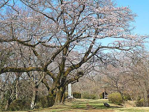 一昨日は快晴、午前9時半に桜ヶ丘公園に行き、朝の人出が少ない時を狙って、丘の上広場の老木で開花した桜見物をしてみようと洒落込みました。