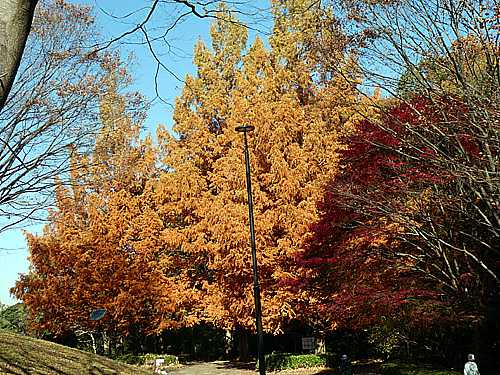 更に坂道を下って行きますと、メタセコイアが見事な茶色を呈していました。
