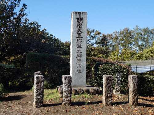 沢山の落ち葉が溜まっている道を行きますと、明治天皇野立て記念碑が立てられています。
