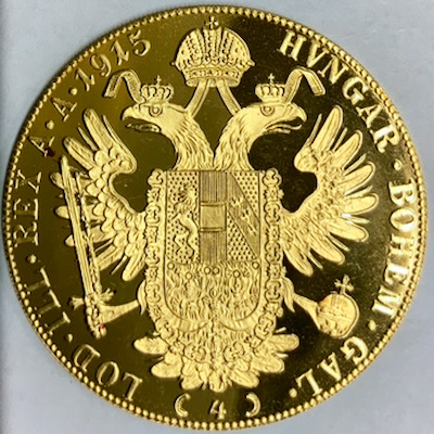 裏面の模様はオーストリア王室のマークである双頭の鷲となっています。