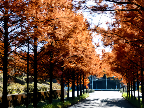 11月下旬になって、葉が茶色に枯れたメタセコイア並木に変貌してくれました。
