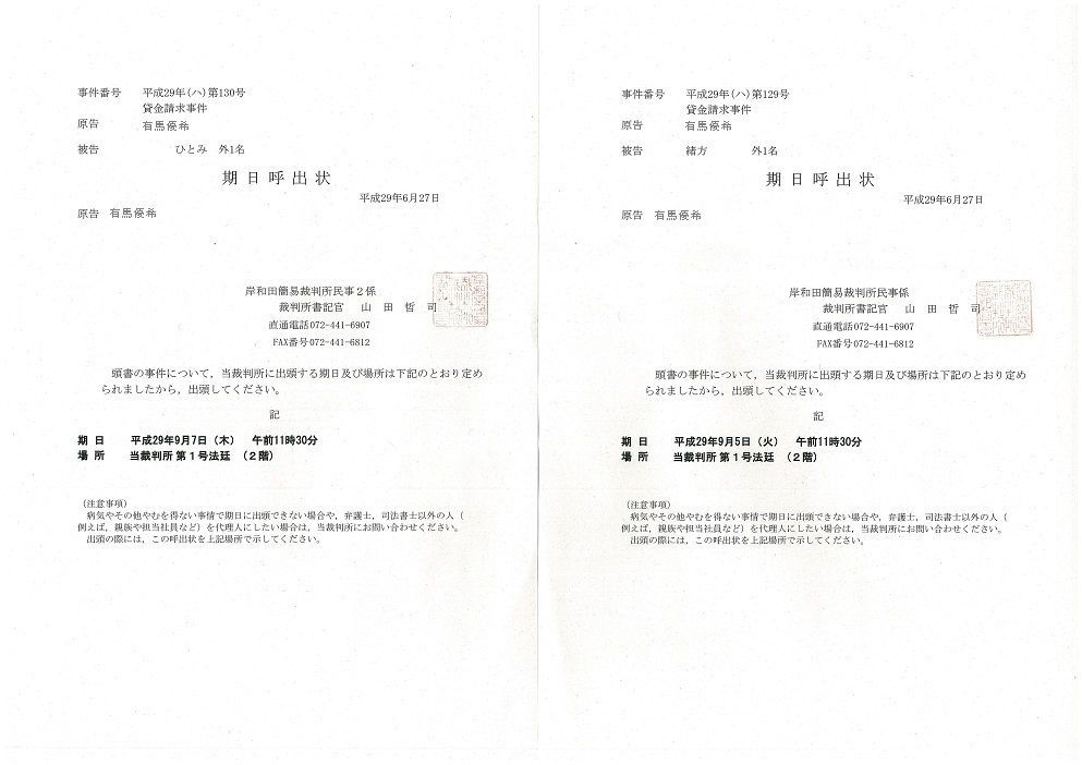 [7月14日AM10時曇り:7月19日に岸和田地方裁判所で多川と関根の貸金等の事件の裁判があります]多川は逃げて行方不明です。(-_-)/~~~ピシー!ピシー!母親で連帯保証人である関根が来る予定ですが福島なので来ないと思います。(ーー;)関根からは裁判所に向けて提案を提出されていますが来ないと成れば提案が通る見込みがありません。ゆえに欠席裁判となり関根の主張が弱まり猫の有馬の主張が強まる事に成っています。この間請求書の受け取り拒否を受けたので、それを不服として要求を引き上げました。猫の有馬としては誠意を見せれば譲歩も考えていましたが逃げたので不服申し立てをして条件を変更しました。元金790万円に対して年2%の利息です。158,000円になります。現時点でも利息が97万円としました。(5年前逃げた時から2%なので合計10%と成るからです)彼らが来れば最低でも利息分が減額され今後の利息も発生しない条件になり。更に、元金も減らされます。しかし、来ないと思います。来ない。は、『裁判所の軽視』と成るので、【法廷侮辱罪】に相当する非常にヤバイ行為なのです。その為、ペナルティが加えられ裁判所に来た者の主張がそのまま通ってしまう事例が多いのです。来れば主張が通り、利息なし減額『600万円』を20年間での分割払い(240回払いで月に25,000円)位に成ると思いますが。有馬の提案では月々3万円で26年以上(30年位)の支払いと成り、合計『940万円以上』(1080万円位)に成るのです。【欠席裁判】は出来れば『避けたい』ですね。( ^^) _旦~~送料無料 ネックレス メンズ レディース【レビュー1万件突破!感謝の価格】ブラックスピネルネックレス 芸能人愛用 アクセサリー シルバー925 ペアネックレス チェーン 天然石 パワーストーン カップル プレゼント【2016楽天年間1位獲得】ネックレス 無段階長さ調整イタリア製 チェーン プラチナ ゴールド 金属アレルギーに優しい レディース 母の日 ジュエリー 送料無料 ホワイトデー プレゼント 18K 女性 アクセサリー ペンダント ギフト 誕生日 スライドチェーン マシューマーク★大粒4mm★今だけ送料無料!★100%本物保証!!ブラックスピネルネックレス!!天然石×96石★3mm〜4.5mmパワーストーン!【あす楽_】【楽ギフ_包装】【chn9】 ブラックオニキス ゴールド メンズ ペア シンプル アクセone ペンダント シルバー アクセサリー 通販 楽天2連ツイストドロップピアス / イヤリング ゴールド / シルバーK18 ブラウンダイヤモンド 0.25ct エタニティリング 「fila」ピンキーリング 送料無料 指輪 ダイアモンド エタニティー ファランジ 18K 18金 ゴールド 4月誕生石 刻印 文字入れ 【楽ギフ_包装】【楽ギフ_メッセ】【あす楽対応】日本製パールネックレス 本貝パール真珠ネックレス 8mm・訳あり品(8ミリ フォーマル ブラックフォーマル 結婚式 披露宴 パーティ ウエディング 卒業式 入学式 冠婚葬祭 通夜 葬式 葬儀 告別式 法事 七五三 礼装 礼服 カジュアル プレゼント)★メール便送料無料★【代金引換不可】16044セット完売! ユニセックスシルバースタッドピアス(ペアセット 2個)(スキンジュエリー)【RCP】【マラソン201602_1000円】10P05Nov16淡水パール ロングネックレス 160cm★不動の1番人気★大粒の淡水真珠7.0-8.5mm【パールロングネックレス】【オールノット】【送料無料】 フォーマル【結婚式】淡水真珠 [dn012]..【送料無料♪】≪ゆうメール便配送10・代引不可≫エタニティリング リング 指輪 シルバー ゴールド メンズ レディース エタニティ ピンキーリング 2017 プレゼント ギフト ladies ペアネックレス レディース ladies