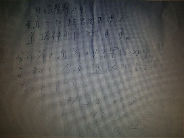 『抗議文書』を置いていった。