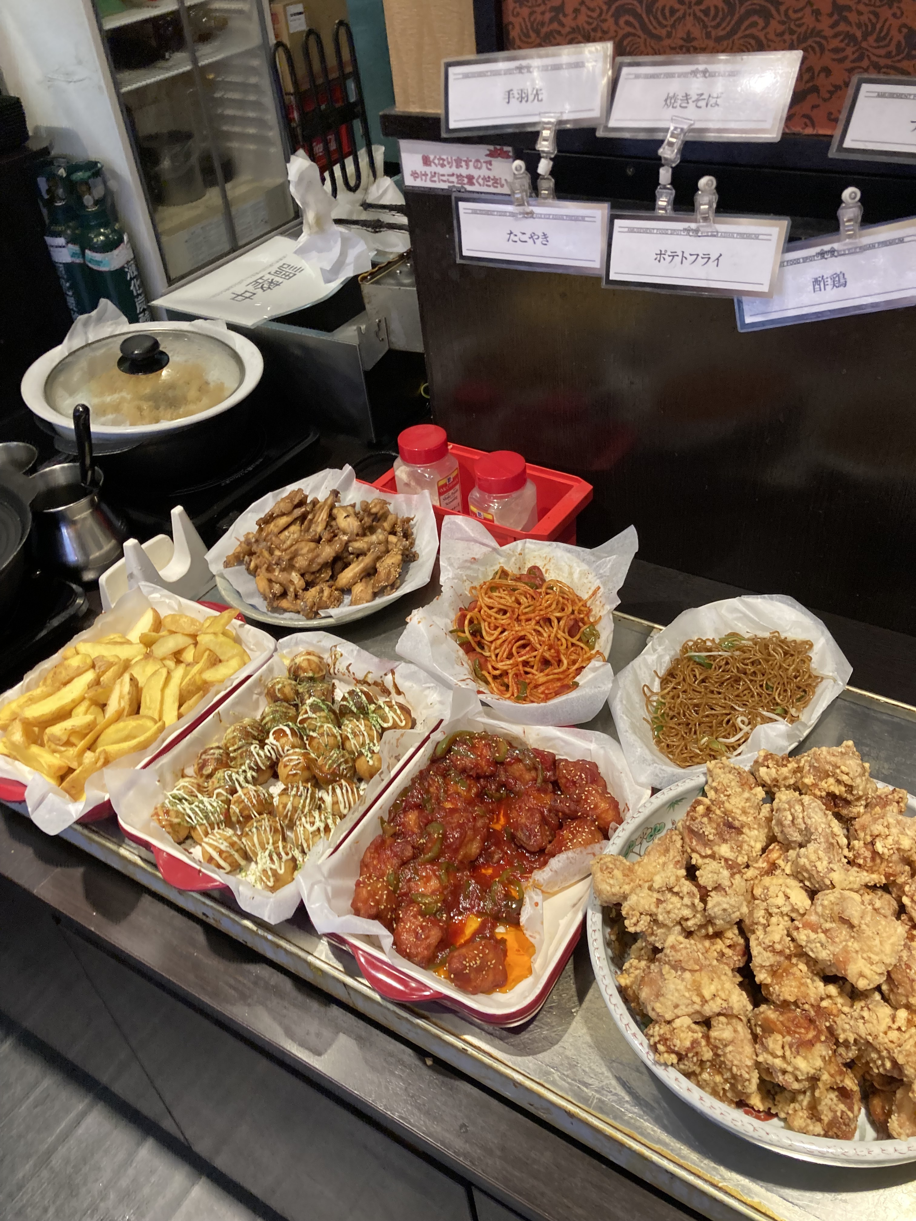 お肉の他にも、唐揚げやたこ焼き、焼きそばと、メニューが豊富です。