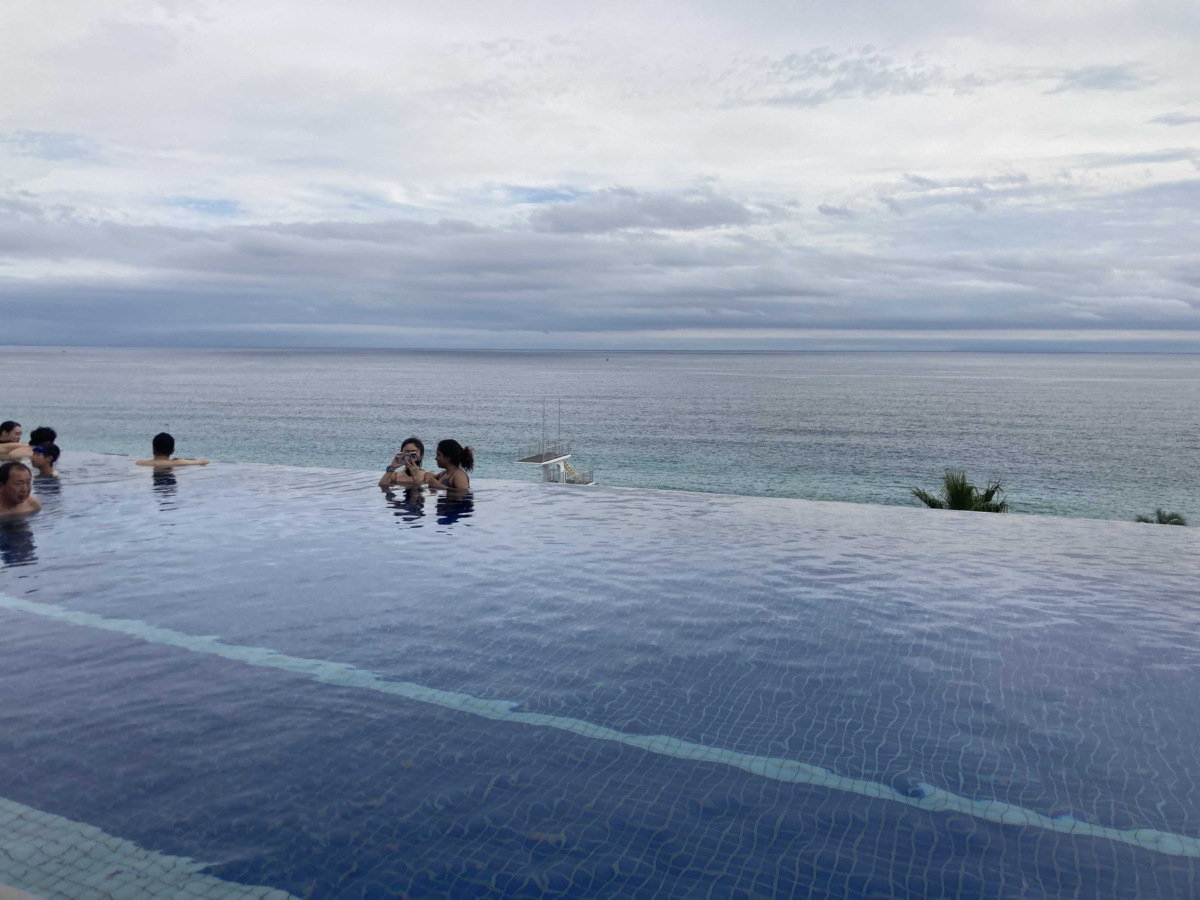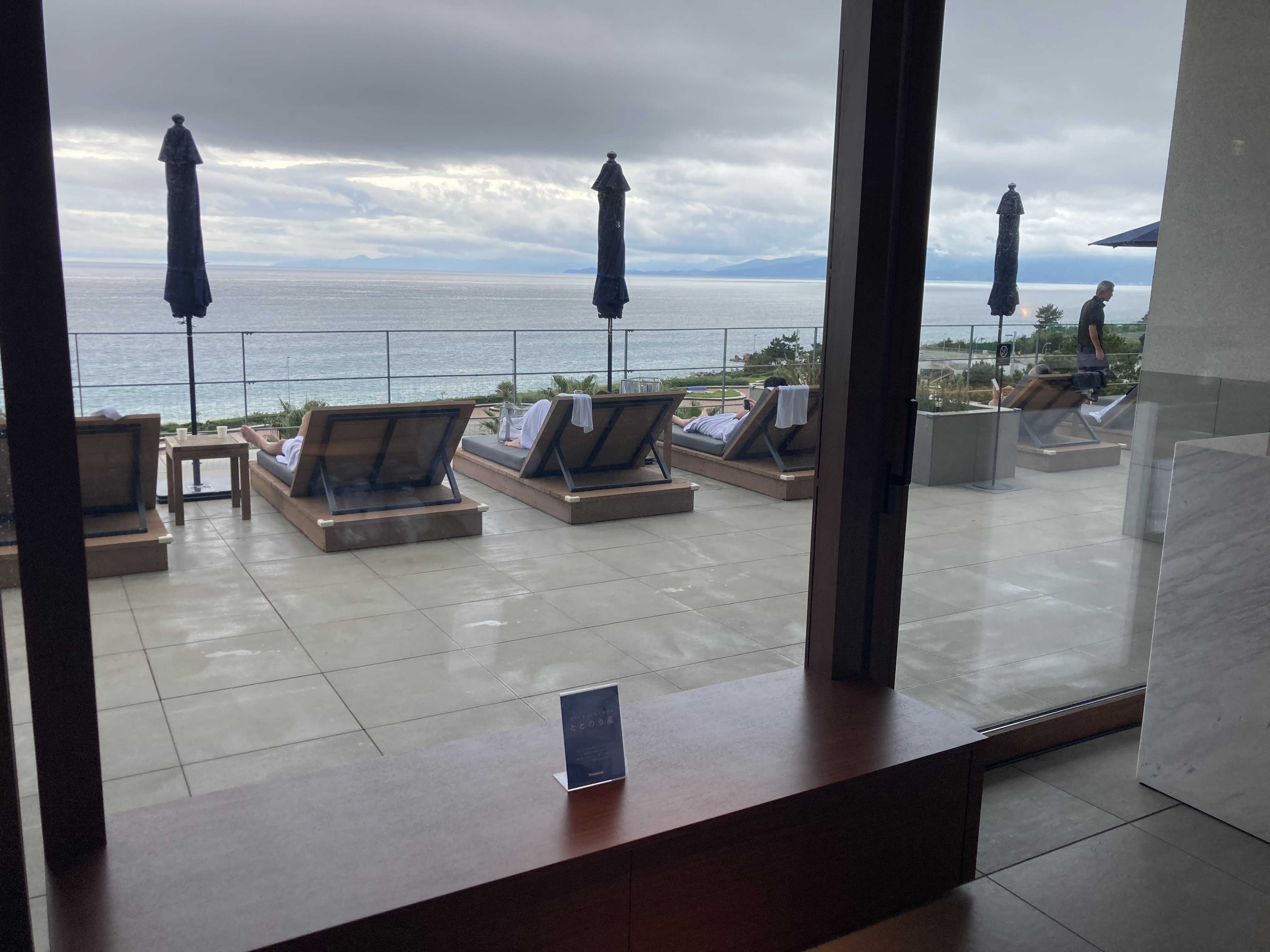 スパへ移動です。このインフィニティプールが名物です。プールは温水で夏以外もOKです。
