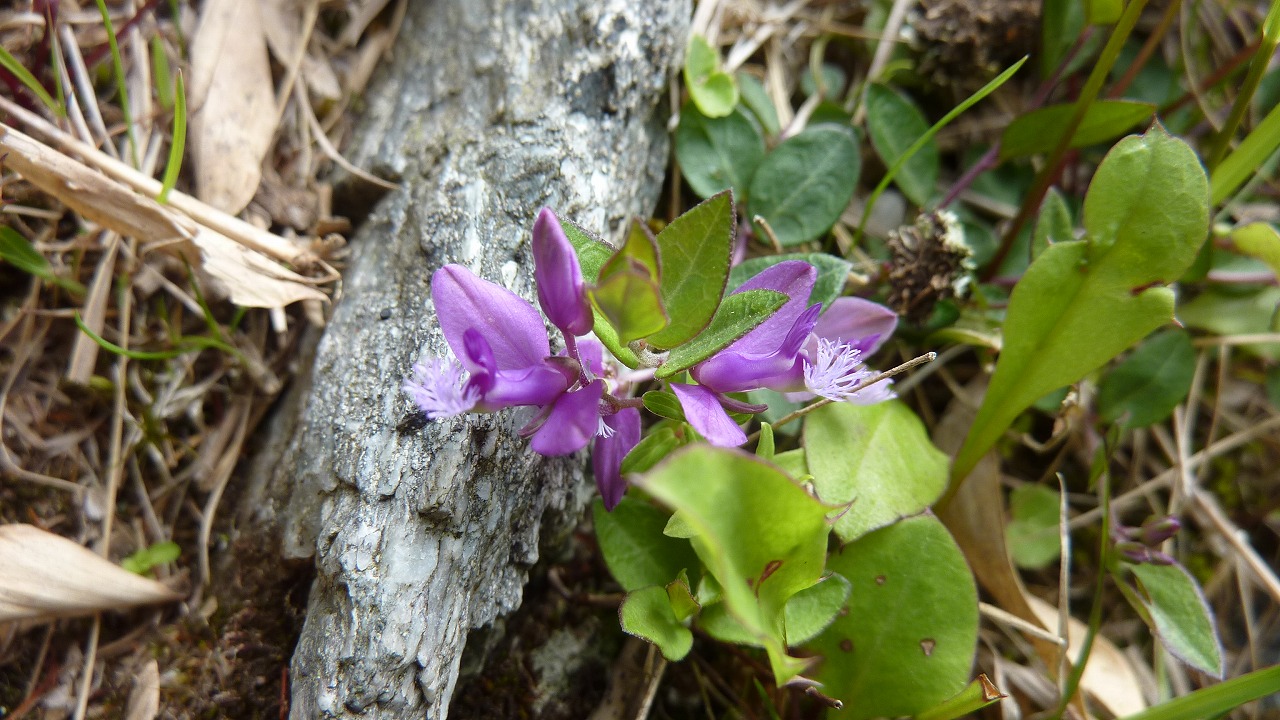その途中で足元に紫色の小さな花?が見つかりました。名前が分かりません。