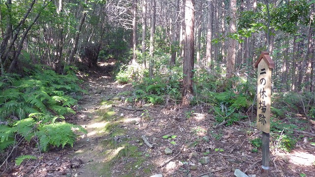 登り始めて約30分、二の休み場跡を通過・・・もう暑さで汗びっしょりです。