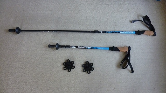 さて、これまで8年間愛用していたストック(モンベル製)ですが、過日1本紛失(置き忘れ)したので新しいストックをインターネットで買い求めました。安価ながらも軽量で付属品も完備、早速、今回使用、今までより軽く違和感なく使うことができました。2本で税込み送料込み3000円は、いい買い物になりました。