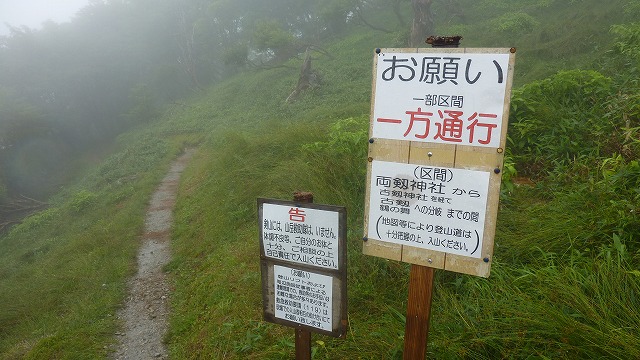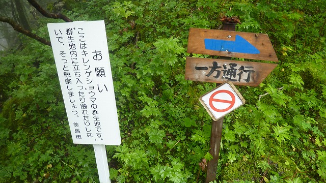 キレンゲショウマの開花時期には大勢の登山客が押し寄せるため、群生地一帯を周回ルートにして一方通行にしています。