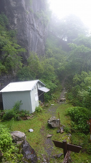 標高1400m、登山口近くの剱神社簡易宿泊所の右脇から登山道へ入ります。