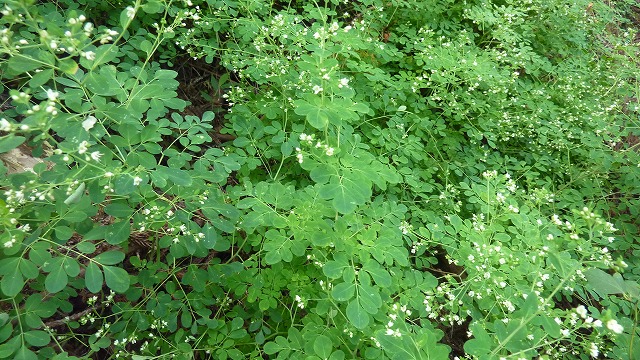 以前から気になっていた山野草です。帰って調べて見るとマツカゼソウ(松風草、ミカン科)と思われます。