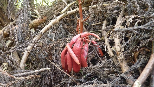 これまで、開花しているツチアケビは見てきましたが、ソーセージのような実は実際に見たことがありませんでした。ちょっと気味が悪い感じではありますが珍しい植物です。