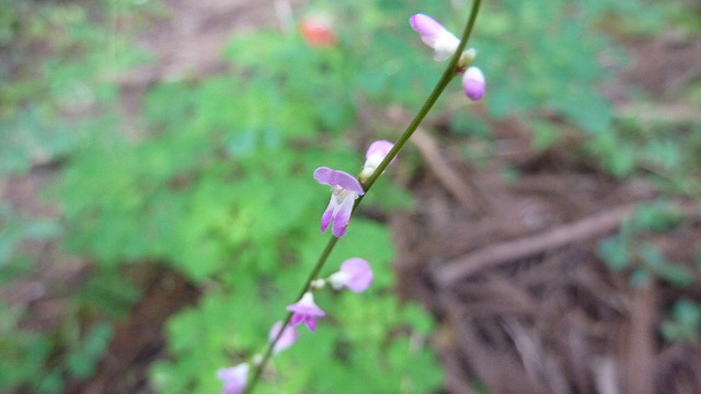 こちらは小さなピンクの花、ヤブハギ(藪萩、マメ科)のようです。