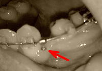 上の歯のワイヤー、前回の調整で太くなって、先生が「今度のは奥から出てきてちくちくすることはないよ」とおっしゃってたのですが…昨夜、頬の裏に違和感が。懐かしいこの感触は…出てきたワイヤーが粘膜に引っ掛かったときの…指で触ってみると、やっぱり引っ掛かってましたそーっと外して、装置側を触ってみました。ぢく。出てますがな、ワイヤーがそんなに長さはないですが、こりゃ引っ掛かるわ、というぐらいは出てます。とりあえずそのまま寝ましたが、翌朝起きてみると、その部分の粘膜が切れて糸状に垂れ下がってました。ひいいいいい~どうやら寝てる間に引っかいて粘膜が破れた模様…しょうがないので、久々に脱脂綿サマにご登場いただくことにしました。ま、もうすぐ下の装置を入れに矯正歯科に行くから、それまでの我慢ってことで。下の抜歯痕、まだちょっと歯茎が腫れてます。ああ~なんで私の歯茎はこうヘッポコなんだろう明日、許可下りるかなぁ